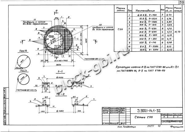 • Сетка С55: основной армирующий элемент, обеспечивающий прочность конструкции;