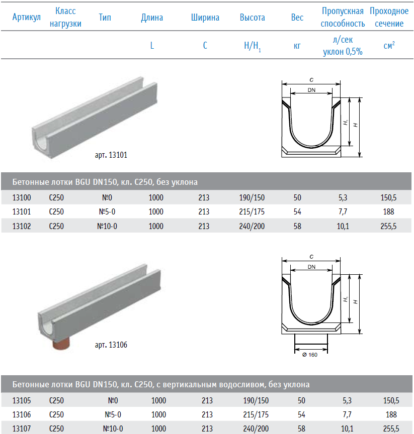 Железобетонные лотки подразделяются на несколько типов в зависимости от назначения и конструкции: