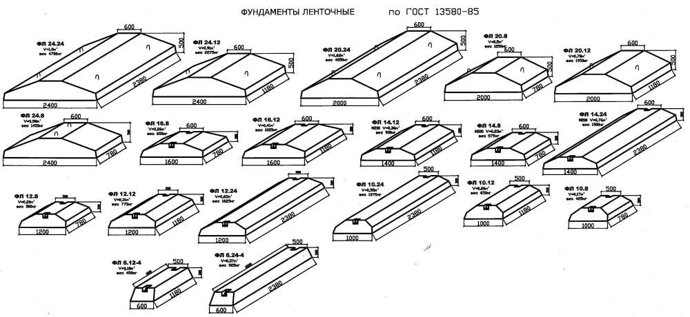 Железобетонные фундаментные плиты подразделяются на несколько типов в зависимости от назначения и конструкции: