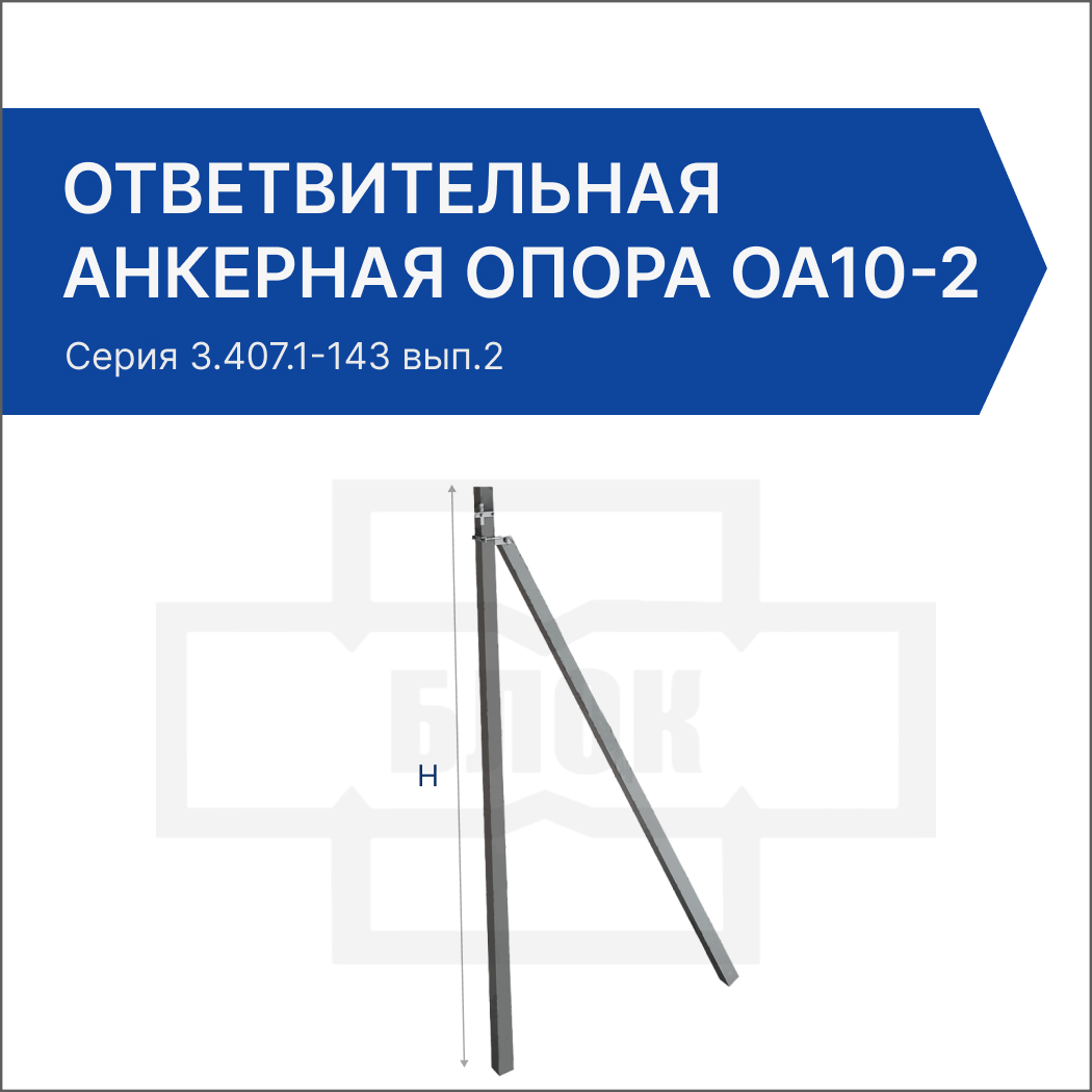 В компании ГК “БЛОК” можно заказать ответвительные анкерные опоры ОА10-2 для ВЛ 10кВ на базе стоек длиной 11м для энергетического строительства, а так же проконсультироваться с нашими специалистами, подобрать требуемые конструкции железобетонных изделий. В нашем отделе продаж можно узнать заранее и уточнить цену опор высоковольтных линий и рассчитать общую стоимость заказа. Купить опоры ВЛ и проконсультироваться по общим вопросам покупки и доставки Вы можете позвонив по телефонам компании ГК БЛОК: Санкт-Петербург: (812) 309-22-09, Москва: (495) 646-38-32, Краснодар:(861) 205-15-11. Режим работы компании: Пн-Пт с 9-00 до 18-00. Компания ГК БЛОК осуществляет доставку опор ЛЭП по всей России прямо до объекта заказчика или на строительную площадку, если позволяет инфраструктура.